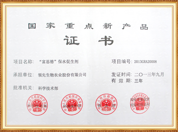 “富思德”保水促升劑—國家重點(diǎn)新產(chǎn)品